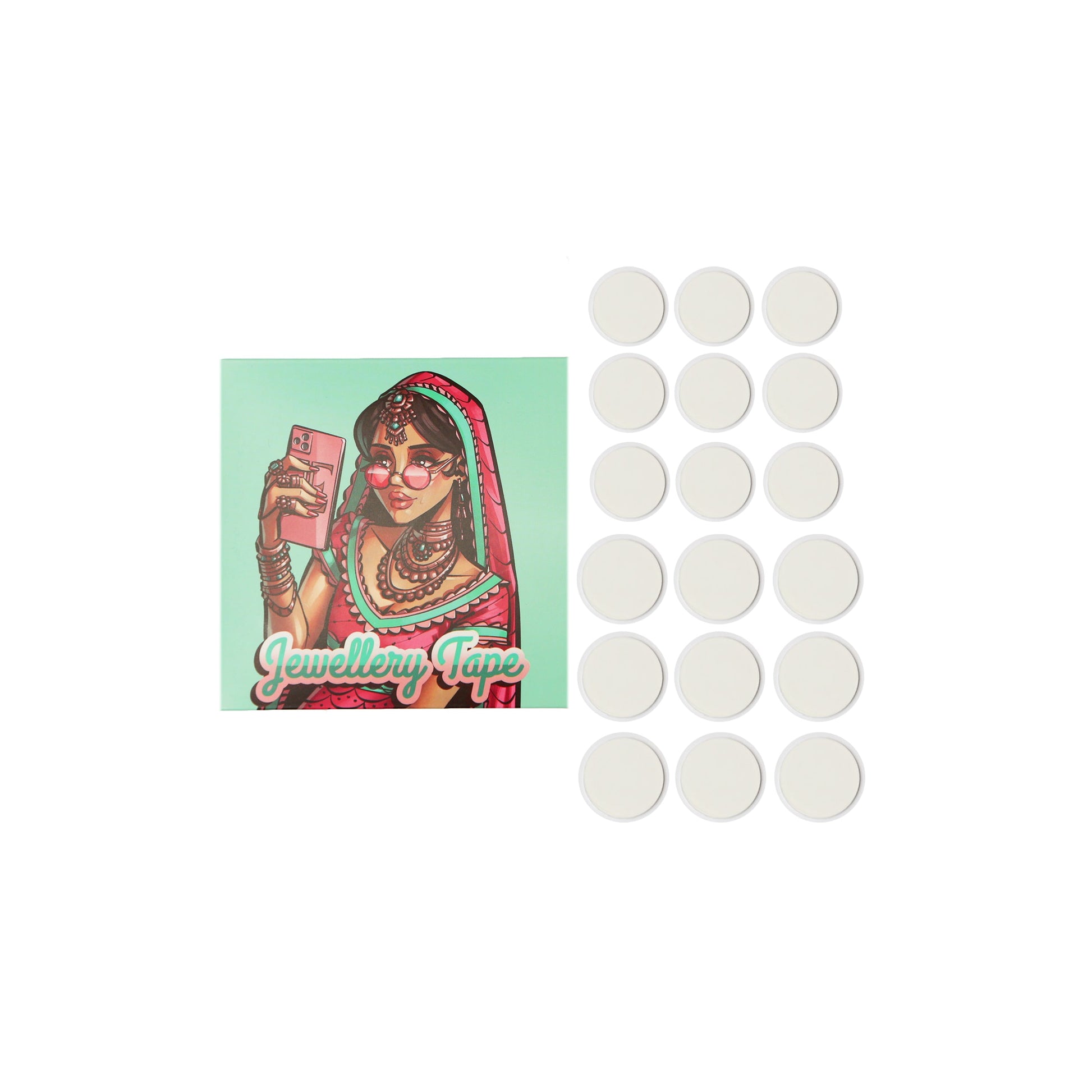 Jewellery Tape for all your tika’s that never stay in place, this amazing transparent double sided tape can also be cut to fit your tika design. No more glue needed girls!!!!! Low risk of skin reactions. Includes 2 sizes 9 dots each size 1mm & 2mm thickness Both 2cm round.